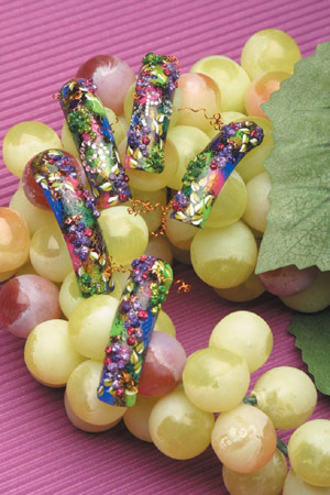 6、用清洁粉将金属线粘到葡萄上,以象征葡萄藤。最后涂抹顶油。