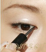 第三步:用眼线笔在眼线液上覆盖,使眼线变粗