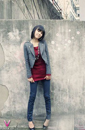 在所有艳色的搭配中,深红配灰色是基本的配色方法。传统的灰色西装剪裁过于正规,穿在身上好像去跑业务一样,而修身剪裁的短款灰色制服西装显得优雅、成熟,适合OL身份的你。混搭和项链都为呆板的西装带入新的休闲元素。