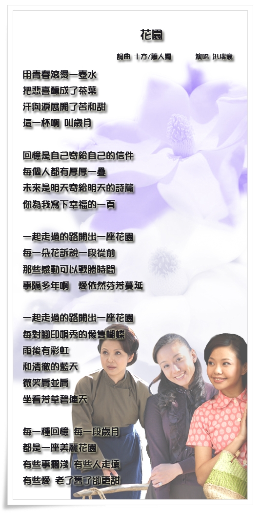 花園 洪瑞襄,1-25集為片尾曲,26-50集為片頭曲,大愛劇場熱播中。。。